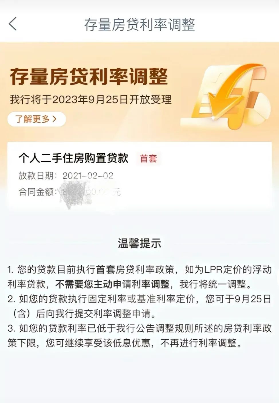 建行上线最早,9月12日,建行在手机银行APP、“建行智慧个贷”小程序等渠道上线“存量房贷利率调整”功能。