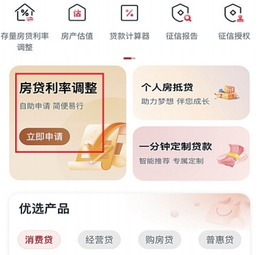 目前多家银行已经在手机银行上线了“存量房贷利率调整”的功能,并且提供查询服务,方便办理流程。例如,打开工商银行手机银行APP,在首页就能看到“存量房贷利率调整”模块,点击进入,可以看到个人住房贷款,这里会显示这笔贷款是不是符合条件的首套贷款。如果是符合条件的首套贷款,银行会主动批量调整,并把结果通过短信方式通知客户,新的利率水平在当天就会生效。