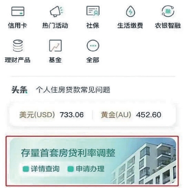 中国农业银行客户经理表示,关于如何查询、申请房贷利率调整,也可以关注“中国农业银行微银行”微信公众号,公众号中推送的文章有详细的操作步骤。