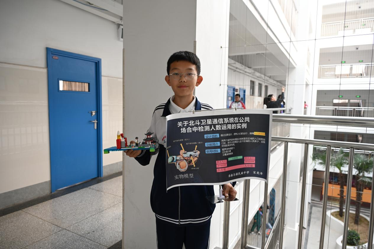 来自鄂尔多斯市准格尔旗中学的宋奕泽提出了基于北斗卫星通信系统在公共场合中检测人数的应用。“我认为可以将旅游景点的游客人数通过北斗通信卫星中转传入互联网,使游客实时并且足不出户就可以看到景区的拥挤度,让人们能够合理的规划出行。并且使一个地区景区管理人员可以在一个地方就看到这个地区内所有景区的人流量信息,既方便了景区人员管理,也提高了管理效率。”宋奕泽介绍。