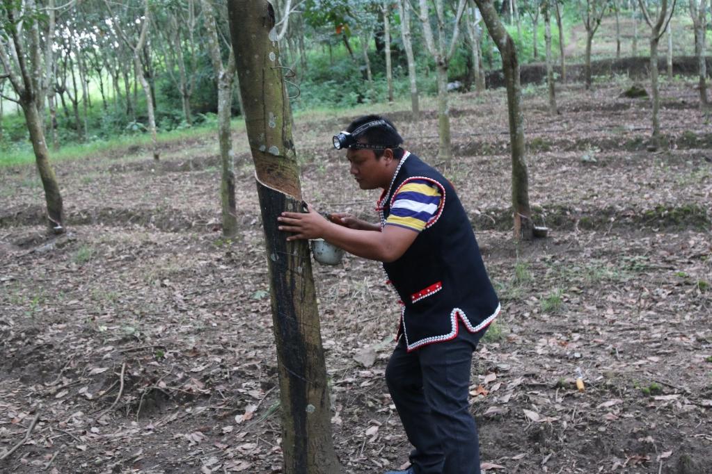 2017年10月,云南省永德县团树村佤族胶农蒋文富在割胶