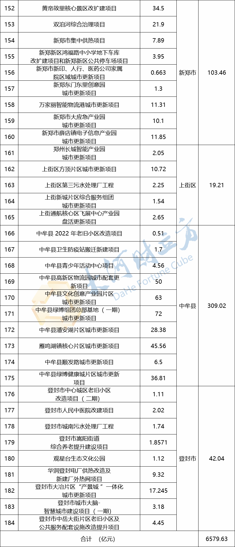 截至目前,郑州市调整后的城市更新项目库共有184个项目,总投资6579.63亿元。