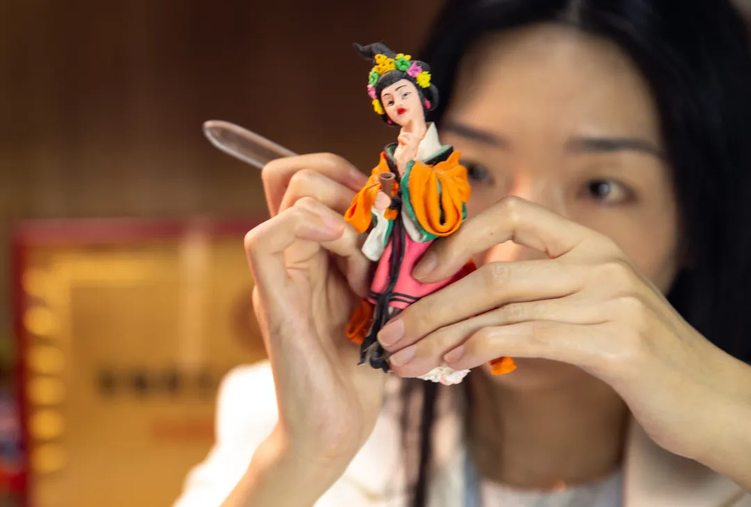 非遗项目精彩体验:陶瓷拉胚坯体验、艾草花束、欢乐包粽子、民间剪纸、面塑、非遗漆扇、传统缠花制作技艺、香包和五彩绳编等。