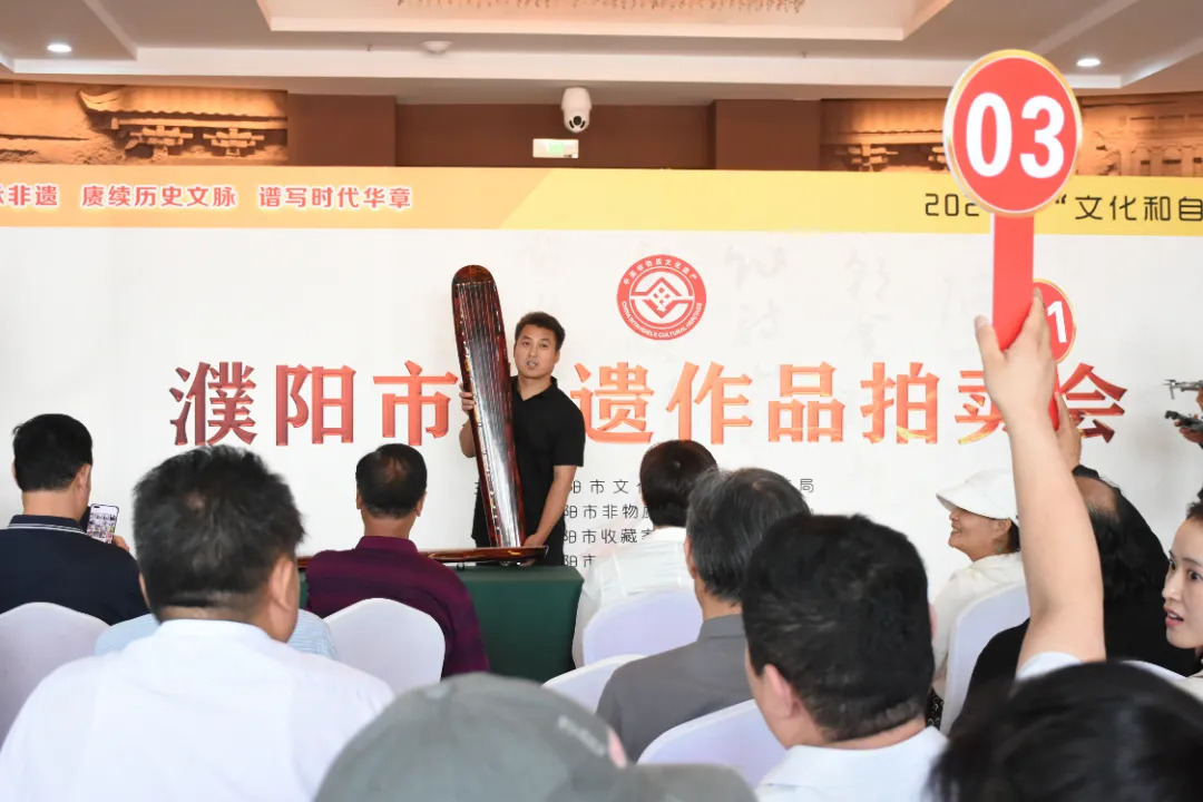 “濮阳市非遗作品拍卖会”是本次活动的一大亮点。本次拍卖会有聂氏麦杆画、陈氏面塑、锦堂古琴等30余件精美作品参加,拍卖会现场竞拍热烈,成交金额达200多万元。此次拍卖会,不仅宣传了非遗品牌,发展了非遗产业,同时也更好地保护和传承了非物质文化遗产,提升了非遗作品的收藏价值地位。