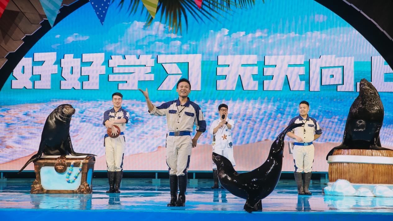 在工作人员和家长老师的陪伴下,孩子们首先在南极企鹅馆和中原首只帝企鹅幼崽打了招呼,萌萌的帝企鹅和孩子们对望的画面,温暖而又治愈;极地动物馆的北极熊夫妇懒洋洋地打着哈欠,被游客评为海洋界社牛的海狮和海豹激动地和孩子们近距离互动,《白鲸音乐秀》用海洋之心向孩子们传递来自海洋的善意,奇妙海洋馆的人鱼们在波光粼粼的海底用优美的舞姿为孩子们编织了一场童话。工作人员耐心地为孩子们科普海洋文化和动物保护知识,用幽默风趣的语言带领孩子们了解海洋世界,帮助孩子们增长知识,拓宽视野,增强自信心和社交能力。