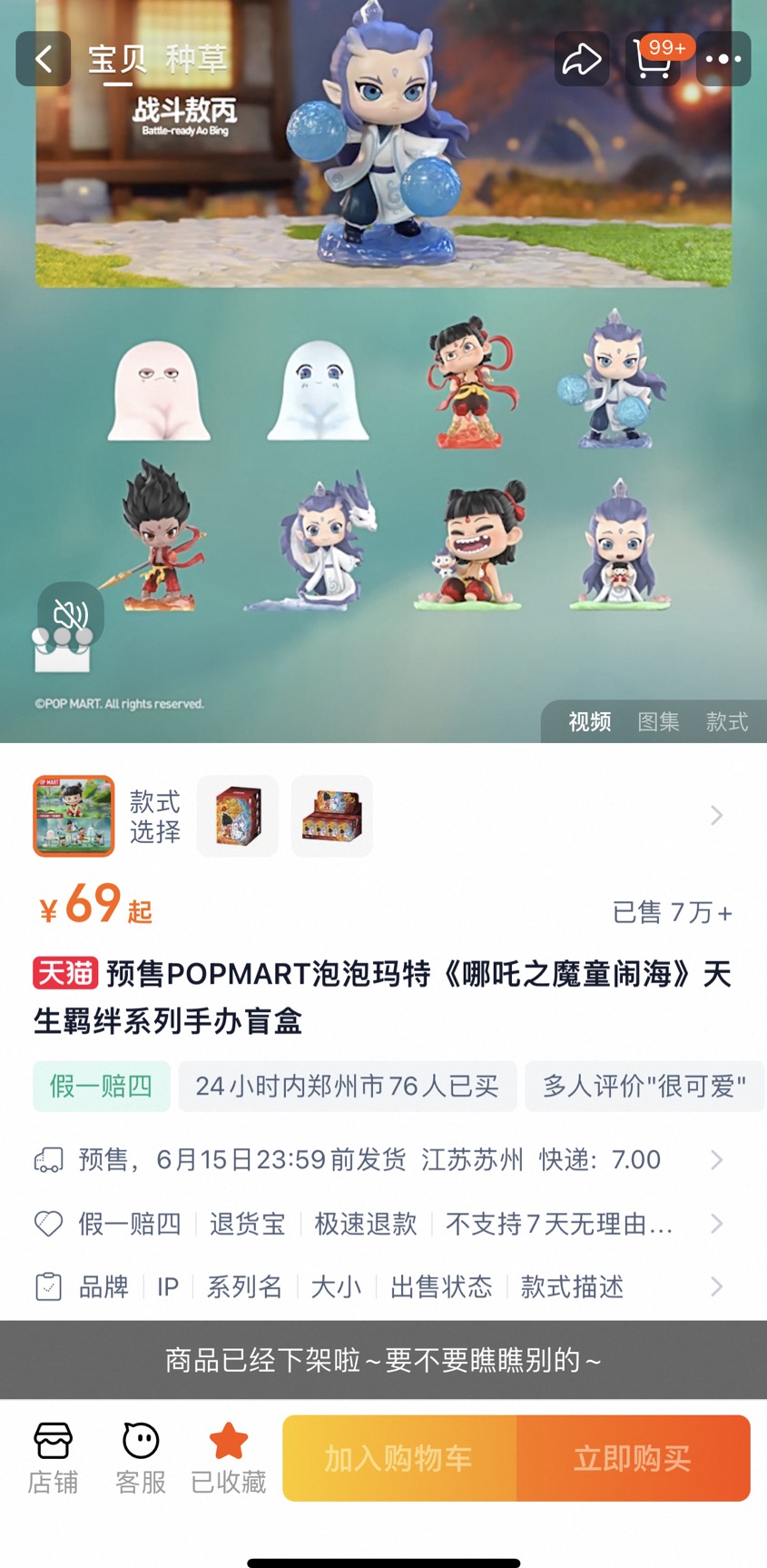 《哪吒2》“天生羁绊”系列盲盒上线即售罄