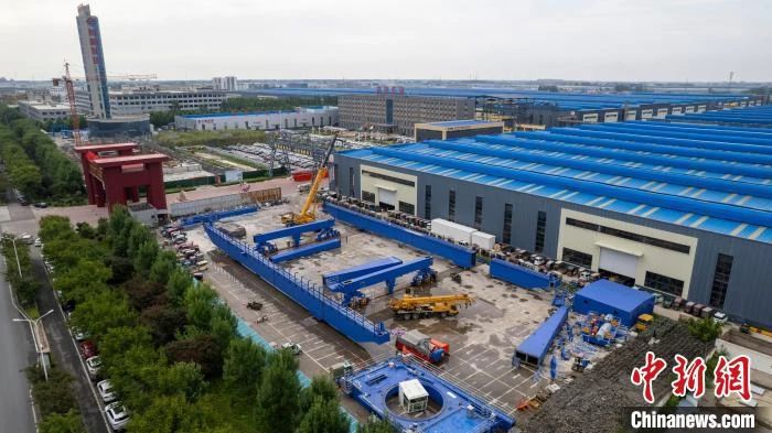 图为河南矿山智能产业园区起重机产品汇装现场。(无人机照片)李超庆 摄