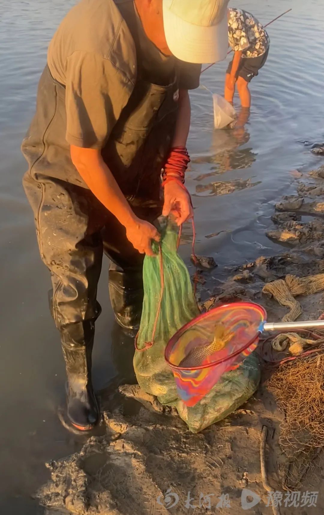 近日,郑州市贾鲁河部分河段截流,引来大批市民在河道内捞鱼。