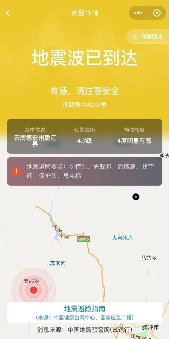 此次震中距腾冲市38公里、距盈江县城51公里、距芒市89公里,距昆明市462公里,此次震中造成当地震感明显。