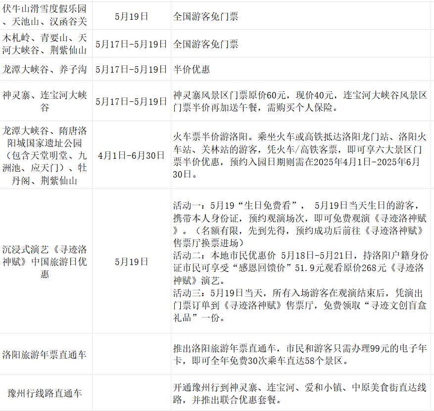 今天是中国旅游日,河南多个景区推出,惠游福利政策+景区特色活动,免票、半价、缤纷活动……近期来河南!玩遍大美中原: