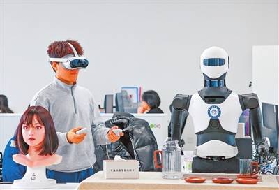 中豫具身智能实验室研发的人形机器人在为客人倒水。