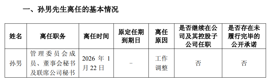 1月22日,中国国际金融股份有限公司发布公告称,自2026年1月22日起,经公司董事会决议,因工作调整,孙男不再担任公司管理委员会成员、董事会秘书及联席公司秘书职务。同时,公