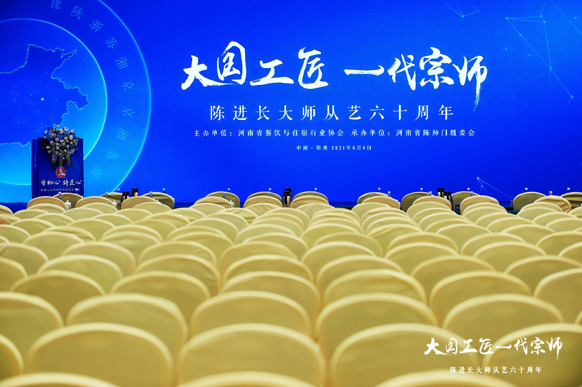 2021年6月9日,由河南省餐饮与住宿行业协会主办、河南省陈师门组委会承办的“‘大国工匠 一代宗师’陈进长大师从艺60周年活动”在河南省黄河迎宾馆隆重举行,500余名领导、行业嘉宾及媒体代表、餐饮企业代表参与了此次盛会。