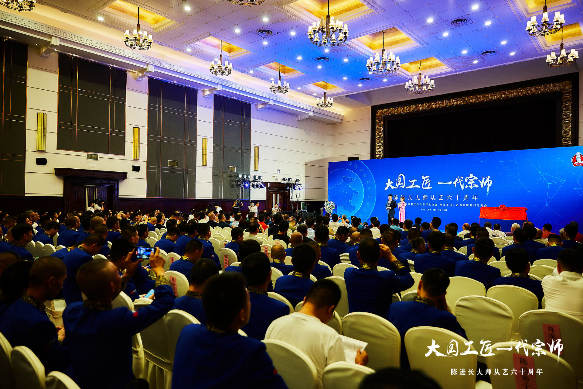 直播员:河南一百度会场布置完毕,“大国工匠 一代宗师”陈进长大师从艺60周年活动即将开始!