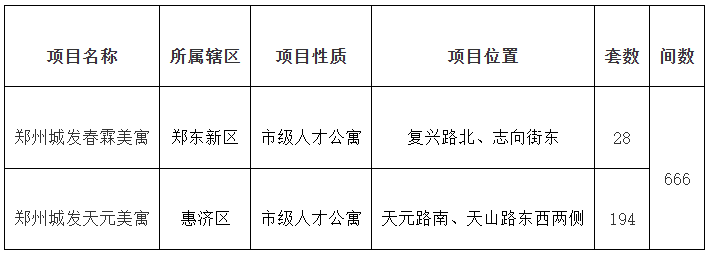 3月2日,郑州市住房保障和房地产管理局公布2026年郑州市第一批人才公寓配租方案,涉及郑州城发春霖美寓、郑州城发天元美寓两个项目,共配租房屋222套、666间。