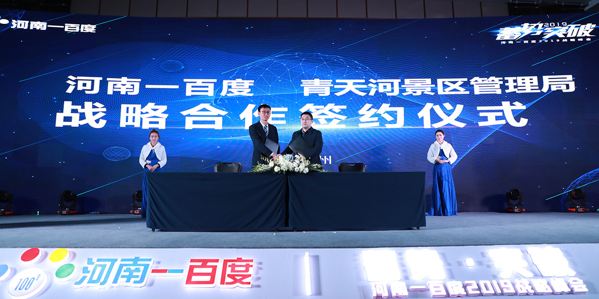 河南一百度与青天河景区签署2019年战略合作协议