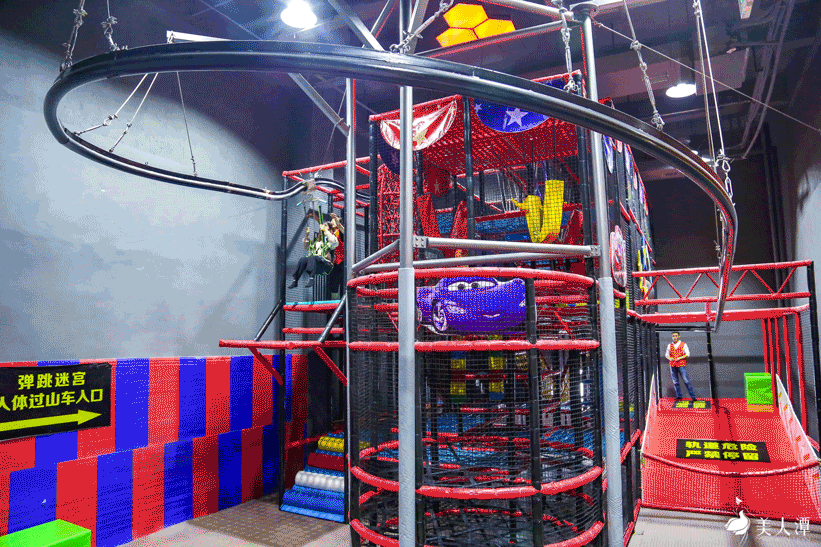人体过山车这么好玩的项目,藏在弹跳迷宫里。系上安全绳索,咻~~一下工作 人员会把你整个人推出去了,体验飞一般的感觉。
