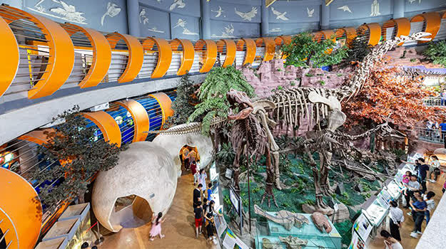 河南自然博物馆(河南省自然资源宣教中心),位于郑州市郑东新区金水东路18号,是河南省自然资源厅直属、正处级公益一类事业单位,是省情科普教育自然窗口和自然资源事业技术支撑单位。 2021年10月,入选首批河南省中小学研学旅行实践基地拟认定名单。 建筑面积5870㎡,布展面积4100㎡。建筑新颖别致,独具风格。馆内设有地球厅、恐龙厅、生命演化厅、古象厅、矿产资源厅、生态厅、矿物厅、4D动感影院(多功能厅)和地震海啸感受剧场,馆外有矿石林、科普广场、恐龙雕塑等。馆内收藏了省内外地质矿产、古生物、矿物标本3万多件。