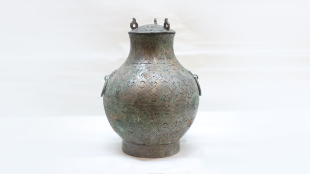 春秋嵌绿松石几何纹铜壶