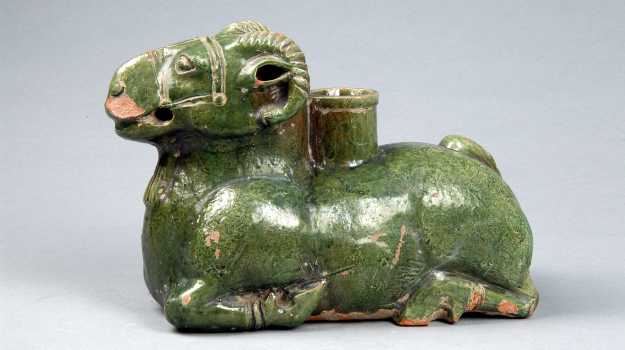 东汉绿釉红陶卧羊尊