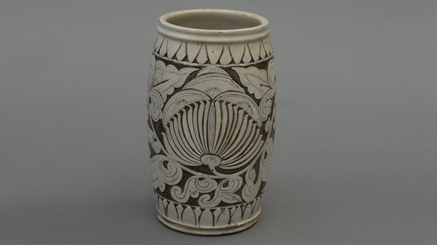 宋代白釉刻花罐