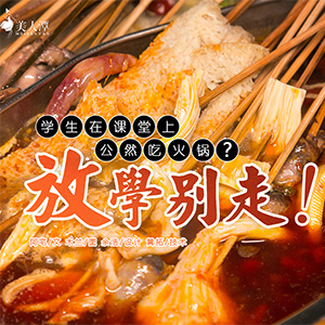 教室的左侧陈列着几台装串串的冰柜,想吃什么自己取,不 够也可以在试卷上点,料台就在讲桌旁边,不用打报告喊服 务员。如果你是老客人,不用复习就知道串吧里必不可少的 是哪几道菜。