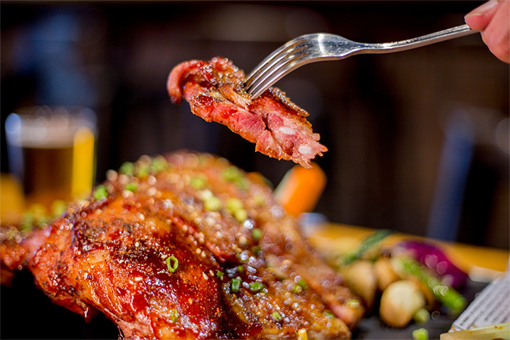 精瘦弹牙的烤猪肋排、烤牛肋排、搭配三种香草腌制成的香草烤鸡、德式烤