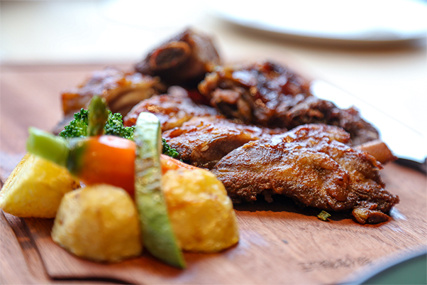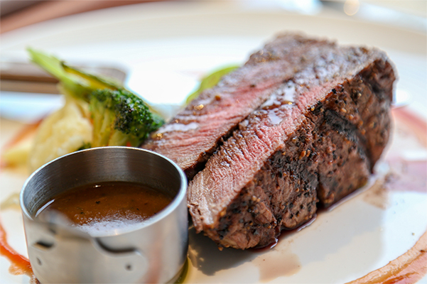 再来道主食—炭烤利比里亚黑猪肋排和澳洲谷饲菲力牛扒,选用进口的顶级食材,烹调的恰到好处,最大程度散发出牛肉本身的味道,同时保持了鲜嫩的口感,每一口都是享受。