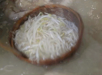常来的食客都说这里的肥肠粉吃起来麻辣鲜香、 后味儿很足。红薯粉与少许豆芽放入竹漏在高 汤氽下,一勺滚烫的骨汤倒入碗中,再放入现 切的大肠,香气立马冲鼻而来。不管你是老饕 还是小饕,绝对躲不过它的诱惑。