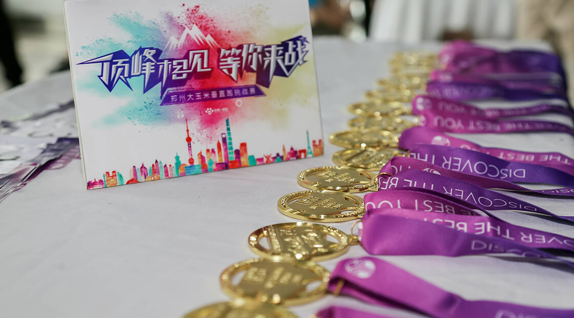 经历了一个半小时的不竞速垂直跑,所有参赛选手先后顺利到达大玉米58楼,成功登顶的挑战者均获得定制纪念章一枚,以做留念。