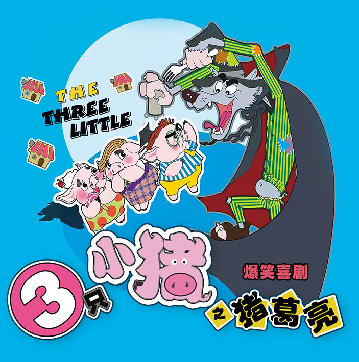 童话爆笑儿童喜剧《三只小猪之猪葛亮》中,猪老大(猪古丽)建造了一所稻草房子,猪老二(猪丽叶)建造了一所漂亮的木头房子,因此二只懒惰的小猪让野狼有机可乘。但是猪老三(猪葛亮)却比较勤奋,修建了一座大砖房。直到有一天,野狼来了,老大老二陷入了麻烦……