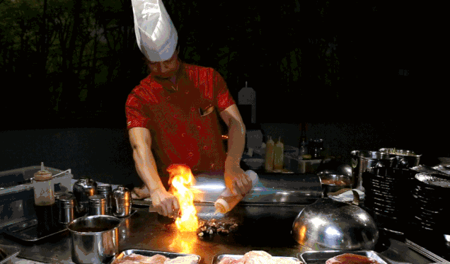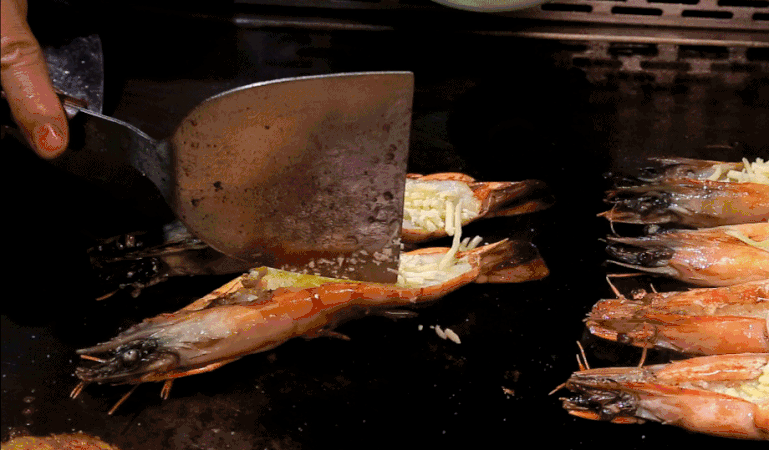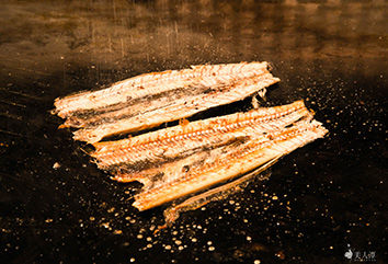 秋刀鱼,完整熟练地去骨,对翻面的时机有十足把握的铁板师傅,整个过程一