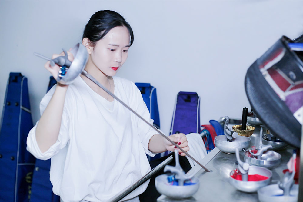在一条长长的金属道场上,将剑柄的末端连接电线,全副武装的运动员各执一方,僵持片刻后,突进决斗而速分胜负。余璐最开始在电视里看到这种来自西方、古老而神秘的运动时,就被吸引得挪不开眼。