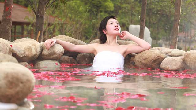 依势而建的温泉小木屋,散落于室外温泉区,掩映于丛林密竹其间。别致幽静,浪漫温馨,远离尘世喧嚣……